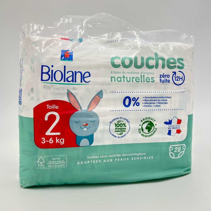 Les couches Biolane taille 2 (3 à 6 kg) offrent jusqu’à 12 heures de protection sans fuite, tout en respectant la peau fragile des bébés. Fabriquées en France, elles sont écoconçues, sans perturbateurs endocriniens, sans blanchiment au chlore, sans allergènes, pesticides ni parfum. Bio et ultra douces, elles sont idéales pour un change sain et sécurisé dès les premières semaines.
