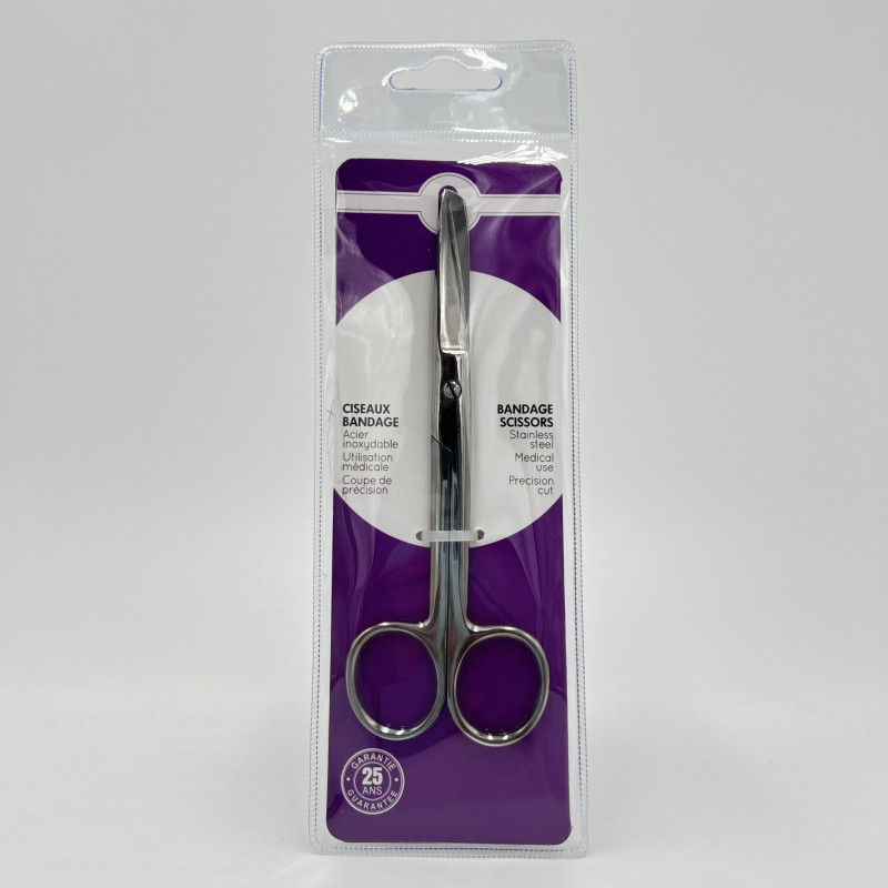 Ciseaux médicaux en acier inoxydable, conçus pour une coupe de précision des bandages et pansements. Robustes, fiables, et garantis 25 ans. Un outil indispensable pour les professionnels de santé et les soins à domicile.