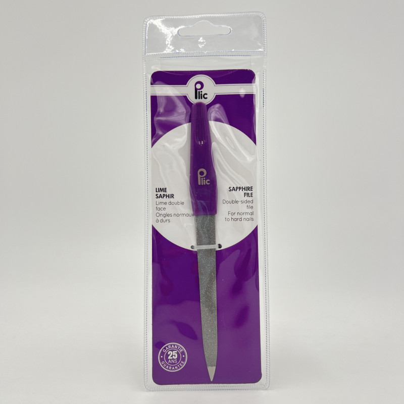 Lime à ongles saphir double face, conçue pour les ongles normaux à durs. Offre une abrasion efficace et précise. Garantie 25 ans pour une durabilité optimale.