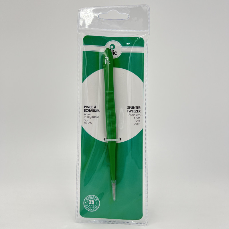Cette pince à écharde en acier inoxydable est dotée d’un revêtement soft touch vert pour une prise en main confortable et précise. Conçue pour retirer efficacement les échardes et les corps étrangers sous la peau, elle allie efficacité médicale et design ergonomique. Garantie 25 ans.