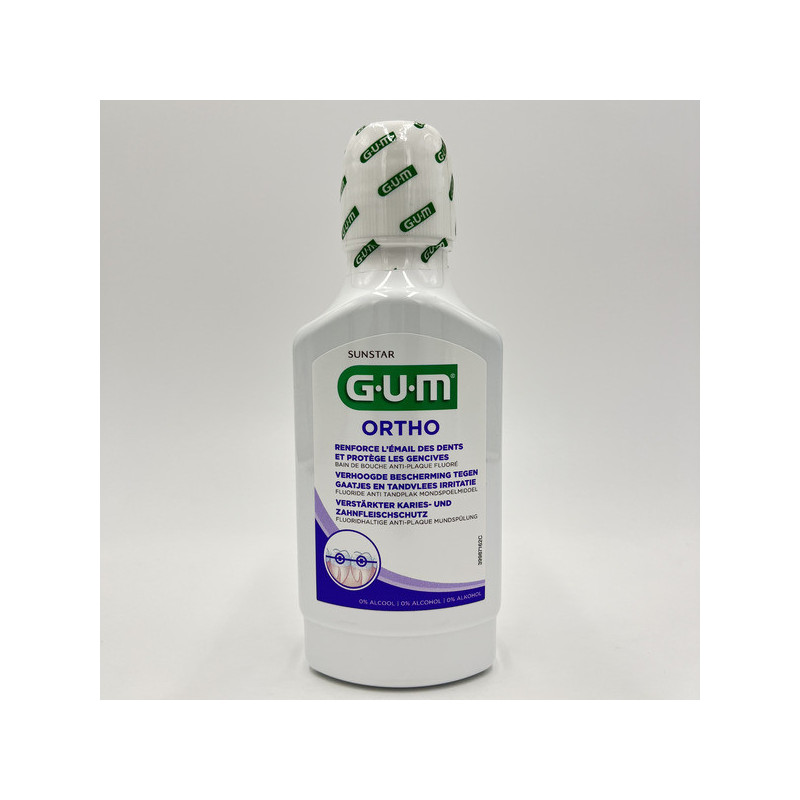 Le bain de bouche GUM Ortho a été spécialement formulé pour répondre aux besoins des personnes portant un appareil orthodontique. Grâce à sa composition douce et efficace, il aide à réduire la plaque dentaire, apaise les gencives irritées et procure une sensation de fraîcheur durable.