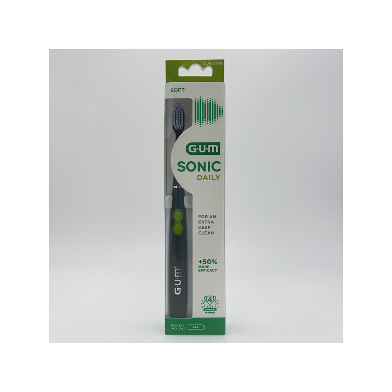 La brosse à dents GUM Sonic Daily Black associe l’efficacité d’une brosse électrique et la simplicité d’une brosse manuelle. Grâce à sa technologie sonique, elle effectue jusqu’à 12 000 vibrations par minute, assurant un nettoyage en profondeur des dents et des gencives tout en douceur.