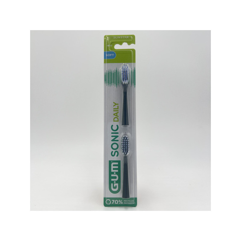 La tête de rechange GUM Sonic Daily Black est spécialement conçue pour prolonger l’efficacité de votre brosse à dents sonique GUM Sonic Daily Black. Ses brins effilés ultra-fins permettent un nettoyage en profondeur jusque dans les zones difficiles d’accès, tout en respectant l’émail et les gencives sensibles.
