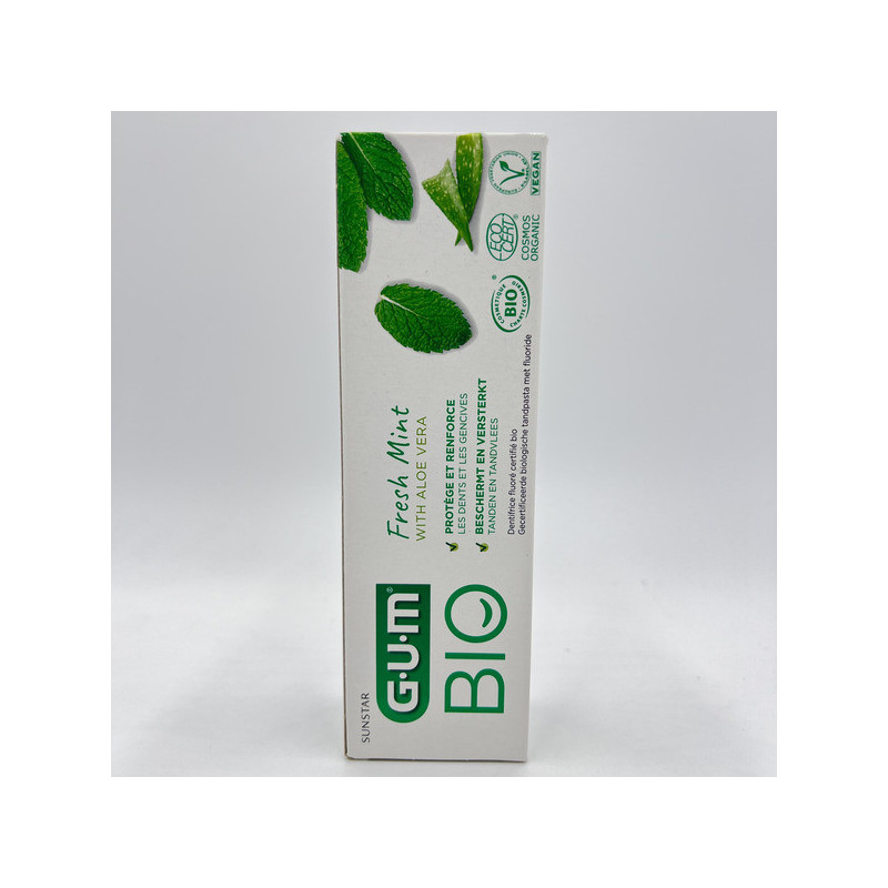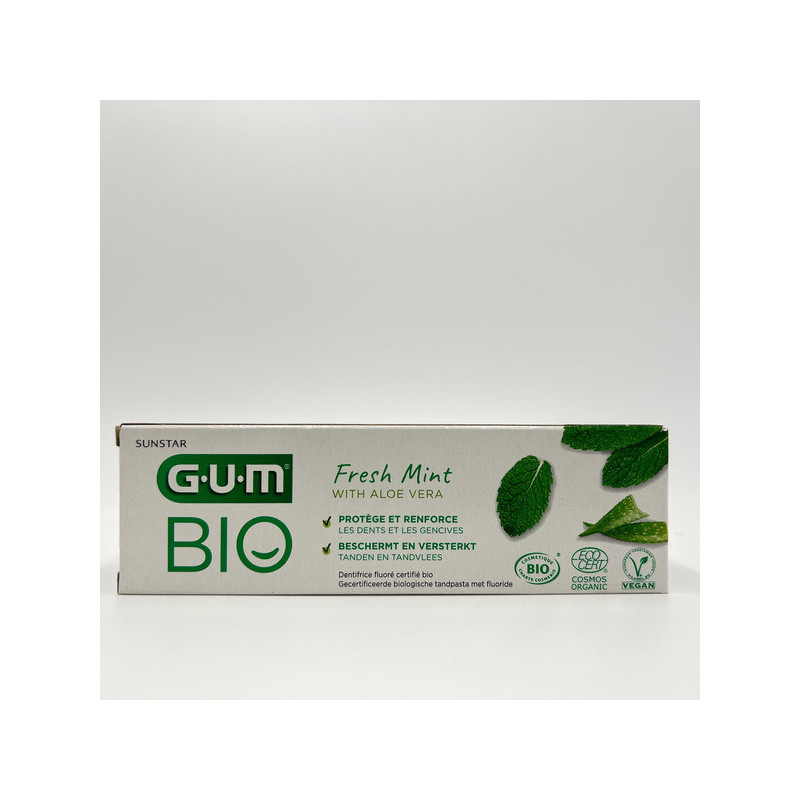 Le dentifrice GUM Bio est conçu pour une hygiène bucco-dentaire quotidienne naturelle et respectueuse. Sa formule certifiée biologique associe des ingrédients d’origine naturelle pour protéger les dents et les gencives tout en douceur.