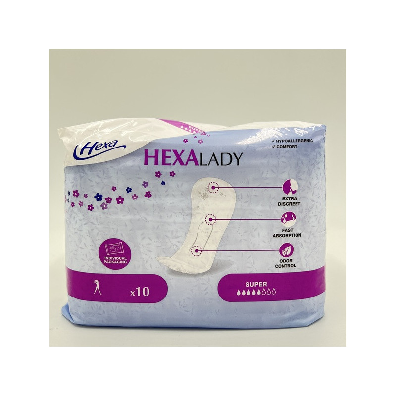 Les protections Hexa Lady Super sont spécialement conçues pour apporter confort, sécurité et discrétion aux femmes souffrant de fuites urinaires légères à modérées. Grâce à leur cœur absorbant performant, elles capturent rapidement l’humidité et neutralisent les odeurs pour une sensation de fraîcheur durable.