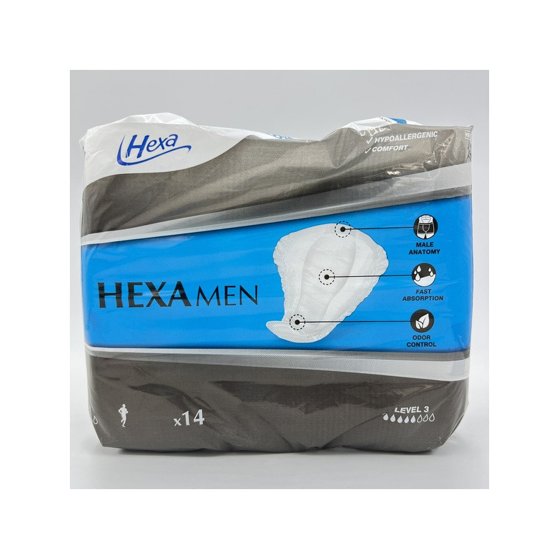 Les protections Hexamen Incontinence Légère Niveau 3 sont spécialement conçues pour les hommes souffrant de fuites urinaires légères à modérées. Grâce à leur cœur absorbant haute performance, elles assurent une absorption rapideet une sécurité anti-fuites renforcée, tout en neutralisant efficacement les odeurs pour une sensation de fraîcheur durable.