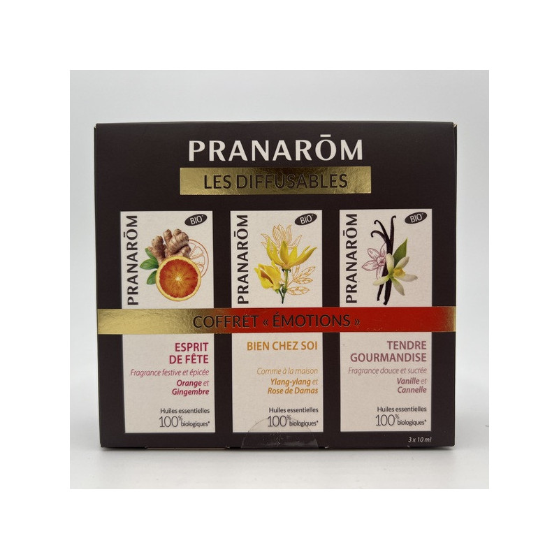 Le coffret Les Diffusables « ÉMOTIONS » de PRANARŌM est une invitation à l’harmonie émotionnelle grâce à l’aromathérapie scientifique et naturelle. Il réunit une sélection de synergies d’huiles essentielles 100 % pures, naturelles et chémotypées, spécialement formulées pour accompagner les émotions du quotidien.