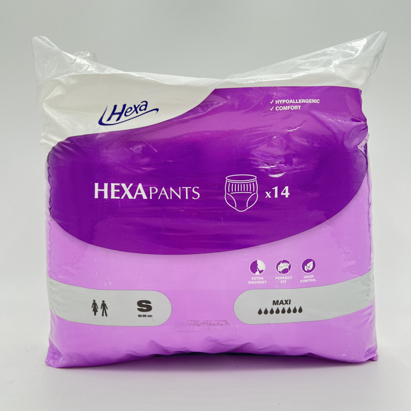 Les HEXA PANTS Taille S sont des slips absorbants conçus pour les personnes souffrant d’incontinence modérée à sévère, tout en préservant confort, autonomie et discrétion. Leur conception type pantalon permet de les enfiler et de les retirer facilement, comme un sous-vêtement classique.